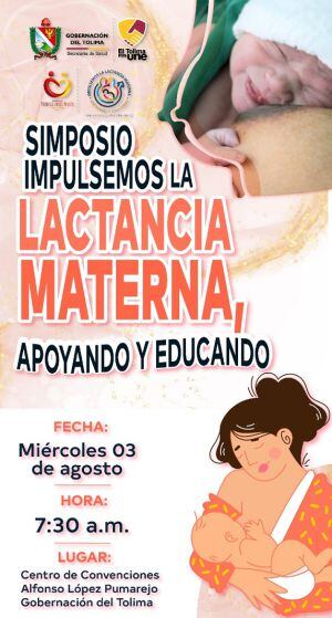 Para esta celebración El Hospital Federico Lleras Acosta y La Secretaría de Salud del Tolima llevarán a cabo “El Simposio impulsemos la LACTANCIA MATERNA, Apoyando y Educando”. Miércoles 3 de agosto desde El Centro de Convenciones Alfonso López Pumarejo.