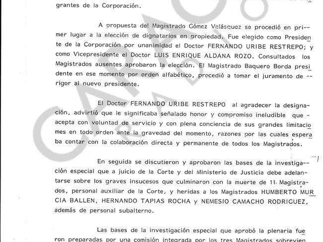 A 40 años de la toma del Palacio de Justicia, el presidente de la Corte Suprema de Justicia, hizo un llamado a la memoria y a la desescalada del lenguaje en el país.
