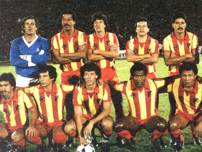 Parados de izq a der. Carlos Munutti, Juan Penagos, Rubén Darío Bedoya, Mincho Cardona, Pompilio Páez, Jamir Carabalí. Abajo en el mismo orden Carlos Vanegas, César Cueto, Claudio Mir, Guillermo al Rosa, Rosemberg Bernal.