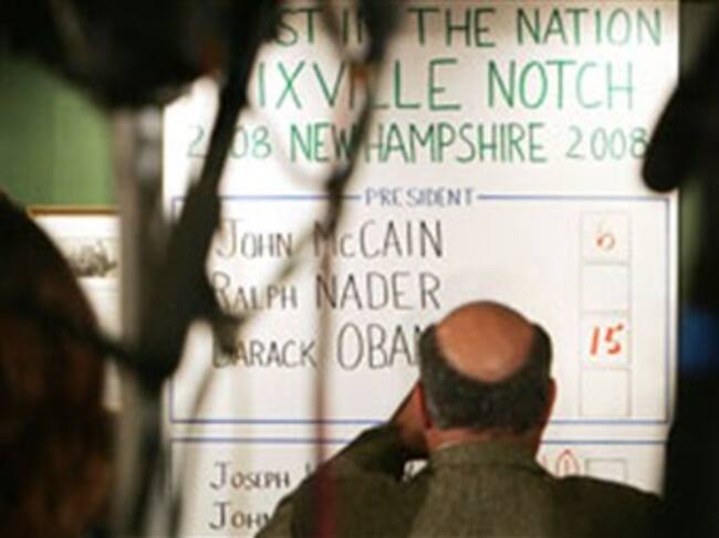 El candidato demócrata Barack Obama ganó por amplio margen en los comicios de las comunidades de Dixville Notch y Hart's Location, que están ubicadas en el estado de Nueva Hampshire y mantienen viva la tradición de contar los primeros aunque escasos votos en las elecciones presidenciales de EU El candidato demócrata Barack Obama ganó por amplio margen el martes en los comicios de las comunidades de Dixville Notch y Hart's Location, que están ubicadas en el estado de Nueva Hampshire y mantienen viva la tradición de contar los primeros aunque escasos votos en las elecciones presidenciales de Estados Unidos. Obama venció al candidato republicano John McCain por 15 votos a seis en Dixville Notch, donde el anuncio fue recibido con alborozo. El resultado significó la primera vez que Dixville Notch elige a un candidato demócrata desde 1968. La comunidad de Hart's Location reportó 17 votos para Obama, 10 para McCain y dos para Ron Paul, un legislador de tendencia libertaria que buscó sin éxito la candidatura republicana. El aspirante independiente Ralph Nader estuvo presente en las boletas de las dos localidades pero no recibió voto alguno. Hart's Location había favorecido a los candidatos republicanos en todas las elecciones desde que en 1996 se reinstaló la votación temprana. El primer votante de Dixville Notch, de acuerdo a una tradición surgida en 1948, fue designado antes de la votación que comenzó a la medianoche, y el resto de los 21 electores registrados de la comunidad sufragaron en los primeros minutos del martes. El funcionario Rick Erwin del cabildo dijo que la localidad, en el norte de Nueva Hampshire, está orgullosa de su tradición, pero señaló que lo más importante es que la participación sea del 100% de los votantes. El presidente George W. Bush ganó las votaciones en Dixville Notch y Hart's Location en el 2004 cuando fue reelegido.