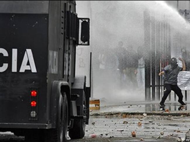 Se han presentado fuertes enfrentamientos entre los protestantes y la policía, que han dejado varios detenidos y un uniformado levemente herido.