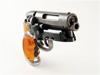 El arma futurista, usada por el actor Harrison Ford para cazar y matar humanoides en la película de ciencia ficción de 1982 "Blade Runner", forma parte de una subasta en la que se ofrecerán objetos de Hollywood