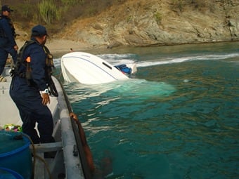Guardacostas de la Armada Nacional lograron en las últimas horas en dos operaciones diferentes, el rescate de 16 personas, que se encontraban en emergencia, a bordo de embarcaciones en el área de Santa Marta y el Archipiélago de San Bernardo. En el primero de los casos, los uniformados lograron salvar a 11 personas se movilizaban a bordo de la lancha de nombre “Shark”, la cual sufrió el desprendimiento de la parte donde se sostienen los motores, originando el hundimiento de la misma. La pronta reacción de Guardacostas permitió el rescate de 10 turistas y el piloto, en momentos que nadaban hacia la playa de “Inca” en Santa Marta. De igual forma en el área del Archipiélago de San Bernardo, Golfo de Morrosquillo, cinco personas que se movilizaban a bordo del velero “Dolce Vita”, de bandera Colombiana, fueron auxiliadas por personal de Guardacostas, en momentos que se encontraban a la deriva como consecuencia de una avería en el sistema de propulsión, debiendo ser remolcados hasta la bahía de Cartagena