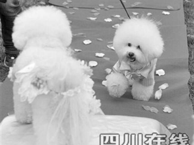 Los dueños de la hembra la cambiaron de atuendo trece veces en una ceremonia en la que no faltó música, una alfombra roja y una habitación de nupcias para los perros en esta ciudad, capital de la provincia de Sichuan