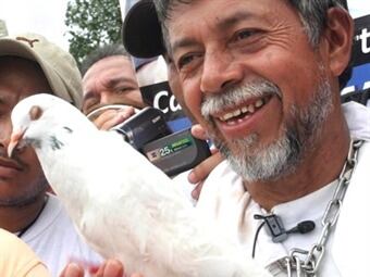 Desde la capital del país, el "Caminante por la paz" pretende que el Gobierno y las Farc se pongan de acuerdo en el día y en el lugar de la liberación del militar.