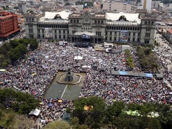 Las protestas en las que miles de guatemaltecos salieron a las calles, unos para exigir la renuncia del presidente Alvaro Colom y otros para apoyarle, concluyeron sin incidentes, dejando evidencia de la polarización que vive Guatemala. Las expresiones de apoyo y de repudio se produjeron en medio de la más grave crisis política que enfrenta el mandatario socialdemócrata, desatada tras el asesinato hace ocho días del prestigioso abogado Rodrigo Rosenberg. El letrado, de 47 años de edad, en un vídeo que grabó tres días antes de su muerte y dado a conocer el lunes pasado, acusó a Colom, a su esposa, Sandra Torres, y a su secretario privado, Gustavo Alejos, de haber ordenado su ejecución. Venidos de los lugares más apartados del país, más de 40.000 personas, según los organizadores, colmaron la Plaza de la Constitución, frente al Palacio Nacional de la Cultura, para apoyar a Colom, a quien consideran "el presidente de los pobres". "Estamos acá para defender la democracia y el Estado de Derecho", señaló Juan Alfaro, secretario general del oficialista partido Unidad Nacional de la Esperanza (UNE), el cual organizó la manifestación de apoyo al gobernante. "Colom, estamos contigo", "Alvaro, presidente amigo, Guatemala está contigo" y "Con Colom hasta la muerte", se leía en las pancartas que adornaban los centenares de autobuses que desde sus comunidades trasladaron a los manifestantes hacia la capital. Los que apoyaron al mandatario, en su mayoría campesinos pobres que son beneficiados por los programas de asistencia del Gobierno y habitantes de los barrios populares y asentamientos humanos, fueron traídos con engaños por los alcaldes y gobernadores, según denuncias publicadas por la prensa local. "Yo vine con mi familia desde Totonicapán (oeste) para apoyar a Colom. Nadie me pagó ni me ofreció nada a cambio. Lo que dicen los ricos (opositores) sobre que nos pagaron, son puras mentiras. Lo que ellos quieren es botar al presidente de los pobres", dijo a Efe Sebastían Axuj, un indígena que portaba una foto gigante de Colom. A menos de dos kilómetros de distancia, en la Plaza Italia, otro grupo de cerca de 40.000 guatemaltecos, según sus propios datos, pedían la renuncia del mandatario. Estos manifestantes, que marcharon vestidos de blanco, eran en su mayoría habitantes de las zonas urbanas, integrantes de las clases medias y altas de la sociedad, y estaban dirigidos por líderes empresariales y políticos de oposición. "Esto no es un pulso de ricos contra pobres, es la expresión del pueblo que está harto de tanta violencia, impunidad y corrupción
