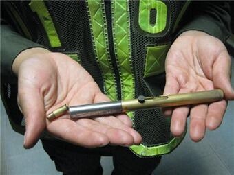 Unidades de la Policía Caldas capturaron a una mujer que tenía una novedosa arma de fuego en su poder., tipo lapicero de metal y sofisticado cilindro.