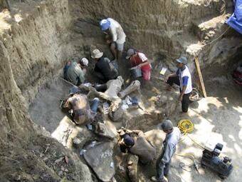 Algunos huesos del paquidermo quedaron al descubierto el año pasado al derrumbarse una cantera de arena, lo que causó la muerte de dos trabajadores. De la tarea desenterrar la osamenta completa, trabajo que se prolongó durante cuatro semanas, se encargaron un equipo de investigadores de la Universidad de Wollongong y expertos del Instituto de Investigación Geológica de Indonesia