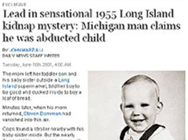 Un niño secuestrado hace 54 años en Nueva York ha reaparecido en Michigan. Dice llamarse Steven Damman, que en el momento de su desaparición estaba a punto de cumplir tres años, y la semana pasada se presentó ante las autoridades federales en Detroit para contar su historia y pedir que se cotejen sus huellas dactilares o que se realicen pruebas de ADN