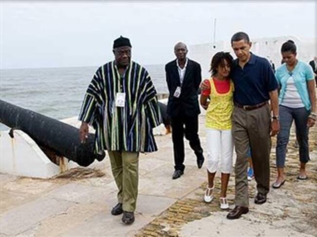 El presidente estadounidense, Barack Obama, y su familia visitaron el antiguo centro de trata de esclavos de Cape Coast en Ghana, en su primera visita desde que asumió el poder a un país del África negra. Acompañado por su esposa, Michelle, descendiente de esclavos, y sus dos hijas, Malia y Sasha, Obama, hijo de un migrante keniano, realizó una visita guiada del Castillo de Coast Capa, antiguamente uno de los principales puntos de partida de los esclavos hacia América, Europa y el Caribe. El antiguo centro de trata de esclavos, situado a unos 160 kilómetros al oeste de la capital Accra, fue construido en el siglo XVII y fue primero un centro de intercambio de madera y oro. Ahora es patrimonio de la humanidad de la UNESCO. Obama señaló que la visita era un recuerdo de "la capacidad de los seres humanos para cometer grandes males". "Por supuesto es una experiencia emocionante, un momento emocionante", dijo. Indicó que el paseo por los calabozos del castillo, que se encuentran por debajo de lo que fue una iglesia, "nos recuerda (que) a veces podemos tolerar y apoyar grandes males aunque creamos que lo que hacemos sea bueno". "Creo que era especialmente importante para Malia y Sasha, que han crecido en un entorno privilegiado, para recordar que la historia puede ser muy cruel, y con suerte parte de lo que se llevarán de este viaje es la sensación de obligación de luchar contra la opresión y la crueldad", añadió. "Por una parte, este es un lugar de profunda tristeza, y por otra parte, es donde el recorrido de gran parte de la experiencia afro-americana empezó", dijo también. "Simbólicamente, poder volver aquí con mi familia (...) y ver este fuerte a través del cual empezó la diáspora, pero también poder volver para celebrar con la gente de Ghana el progreso extraordinario que hemos hecho (...) abolir la esclavitud y finalmente lograr los derechos civiles para todos, creo que es fuente de esperanza", añadió Obama. Obama realizó esta visita tras realizar un discurso ante el parlamento de Ghana en el que llamó a los africanos a tomar las riendas de su destino. Tras esta visita, los Obama debían partir de Ghana y regresar a Washington.