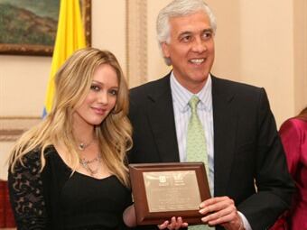 El alcalde de Bogotá, Samuel Moreno, declaró a la estrella del pop juvenil, Hillary Duff, como embajadora de la juventud en su visita a la capital colombiana