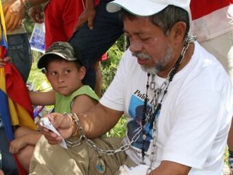 Con una cruz de madera a cuestas, el Profesor Gustavo Moncayo completa tres días de caminata hacia Bogotá, con el propósito de implorarle al presidente de la República que ayude en la liberación de su hijo, anunciada por las Farc, hace cuatro meses. El Caminante por La Paz, de esta manera, quiere llamar la atención del Gobierno Nacional frente a las dificultades para lograr la liberación de su hijo, el Cabo Pablo Emilio, así como del soldado Josue Daniel Calvo, anunciadas hace más de cuatro meses por las FARC