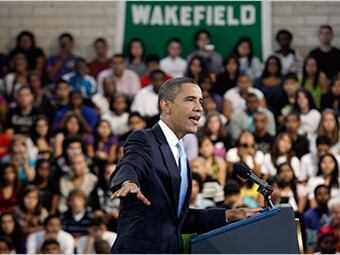 En su discurso, en la escuela de educación secundaria Wakefield, en Arlington, en las afueras de Washington, el presidente estadounidense pidió a los estudiantes que "asuman sus responsabilidades" y acudan a sus clases, "atiendan a sus profesores, escuchen a sus padres, abuelos y otros adultos y trabajen duro para lograr el éxito"