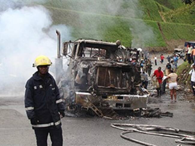 Una tractomula que transportaba carbón, fue incinerada en la noche del lunes hacia las 7 y 15, en inmediaciones de la vereda Sochaviejo en el municipio de Socha, departamento de Boyacá, por dos sujetos pertenecientes al frente 28 de las Farc que se transportaban en una motocicleta