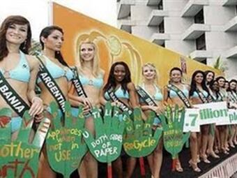 Ellas lucieron un traje de color negro, de dos piezas, con copas triangulares, de anudar al cuello. El traje adornado con sesgos de colores vivos en la cintura y el escote que contrasta con el tono de fondo, diseñado por la firma patrocinadora para ese propósito
