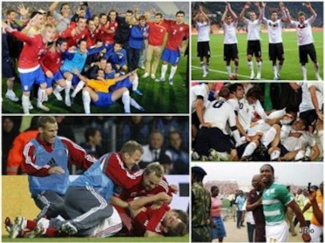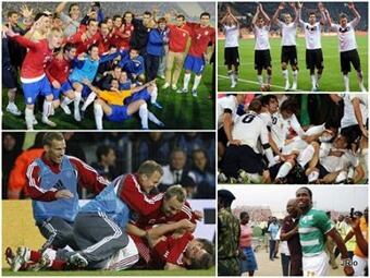 Sebastián Abreu puso la ventaja a los 69 minutos pero Walter Centeno fijó el empate a los 73 y devolvió el ambiente de sufrimiento al encuentro, una característica en la vida de los celestes. Horas antes, un gol ilegal, nacido de una jugada con la mano del barcelonista Thierry Henry y remachado por William Gallas salvó a los franceses del naufragio camino a Sudáfrica. Los ''blues'' Estuvieron contra las cuerdas desde que Robbie Keane, a la media hora, adelantó a los irlandeses, que neutralizaba la ventaja gala de la ida. Fue la prórroga y ese tanto los que rescataron a Francia. Al final en la fase final después de un tramo clasificatorio lleno de dudas. Con el agua al cuello. Portugal fue más solvente. Superó la baja de Cristiano Ronaldo. Y selló su pase. Pudo perder en Lisboa. Pero salió reforzado de Bosnia, donde ganó por 0-1 gracias al gol de Raúl Meireles en el teórico ''infierno'' de Zenica. Eslovenia, por su parte, redondeó la hazaña y por segunda vez en su historia estará en la fase final de un Mundial. Rusia fue incapaz de resguardar la ventaja de la ida, donde se impuso por 2-1. Y no pudo enmendar la situación desde que Zlatko Dedic marcó para los locales al borde el intermedio. Grecia completó la relación de participantes europeos. Un solitario gol del jugador del Panathinaikos Dimitros Salpingidis a la media hora del primer tiempo le sirvió para vencer en Ucrania y clasificarse para el segundo Mundial de su historia 16 años después. El bloque que dirige Otto Rehaggel selló su plaza para el Mundial tras una dura eliminatoria. Resuelta con el único gol en 180 minutos. Fue en Ucrania, en la vuelta, y por medio de Salpingidis, que en el minuto 31 rompió la muralla ucraniana y decidió (0-1) la suerte de una eliminatoria que quedó sellada a favor de cuadro heleno. Finalmente, Argelia se ganó su derecho a regresar, veinticuatro años después, a un campeonato del Mundo tras superar a Egipto (1-0) en el duelo de desempate jugado en Sudán. Desde México 1986 el conjunto argelino no formaba parte del elenco que reúne a los mejores equipos del mundo. Una sequía demasiado prolongada para una nación con grandes posibilidades (33 millones de habitantes, el 70% de los cuales son menores de 30 años). Egipto, campeona de Africa en las dos últimas ediciones se queda en puertas a pesar de disponer de una gran generación de futbolistas en un escaparate mundialistas. Lleva dos décadas de ausencia. Pero el gran partido del meta Fawzi Chaouchi y el gol de Antar Yahia a cinco minutos del final de la primera parte selló el destino