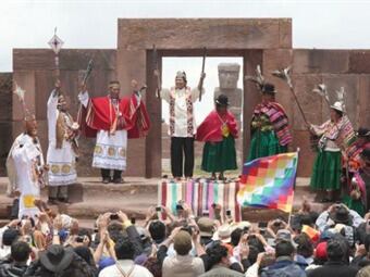 Las cientos de "whipalas" (bandera indígena) y los típicos trajes de los asistentes, que lucieron una variada gama de ponchos, polleras, gorros y mantones pusieron la nota de color en la milenaria ciudadela de Tiahuanaco, ubicada a 71 kilómetros de La Paz y en una altura de unos 3.800 metros al nivel del mar