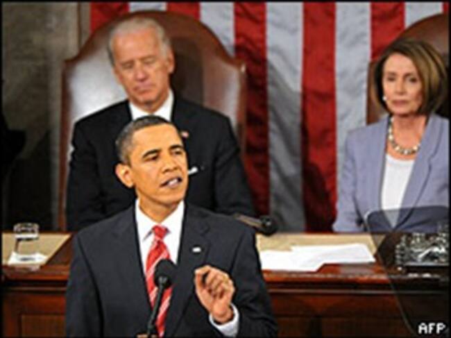 Justo cuando dijo esto, la bancada demócrata se paro y aplaudió fuertemente. Esa misma bancada es la que se ha opuesto en el pasado a sacar adelante el TLC, firmado desde la administración de George Bush, pero que todavía se encuentra estancado en el Congreso de ese país.