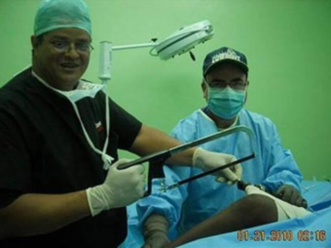 Además de fotos de "fiestas" hay otras referidas a las tareas médicas del grupo. En una de ellas uno de los galenos levanta, para que sea captada con nitidez, una sierra con la que se supone va a realizar una amputación, y en otras se ve a haitianos semidesnudos con mutilaciones de algunos de sus miembros