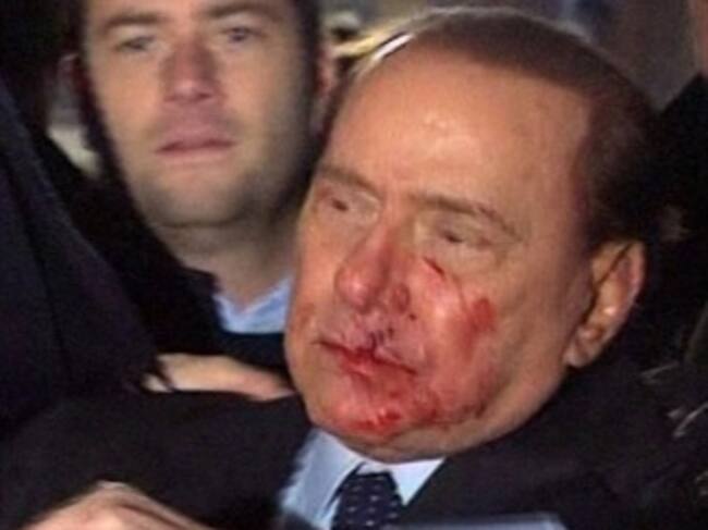 El objeto impactó en la cara del primer ministro y le produjo la rotura parcial del tabique nasal y de dos dientes, así como un profundo corte en el labio, que necesitó varios puntos de sutura y llevó a su hospitalización en el hospital San Raffaele de la capital lombarda durante cuatro días