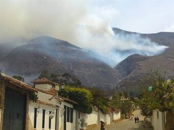 El comandante de bomberos de Villa de Leyva, Jairo Rodríguez, dijo que el incendio aún no ha sido controlado