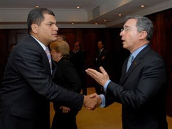 (EFE).- El presidente de Ecuador, Rafael Correa, reiteró que para avanzar en el restablecimiento total de las relaciones diplomáticas con Bogotá su país necesita que Colombia entregue toda la información sobre el bombardeo, en marzo de 2008, a la zona local de Angostura por parte de militares colombianos. En su informe semanal de labores, Correa recordó que en el marco de la cumbre del Grupo de Río, prevista para el lunes y martes de la próxima semana, en Cancún (México), se reunirá con su homólogo de Colombia, Alvaro Uribe. Se tratará del primer encuentro bilateral tras la ruptura de relaciones diplomáticas de Quito con Bogotá, a raíz del traspaso de la frontera para bombardear Angostura, donde las Fuerzas Armadas Revolucionarias de Colombia (FARC), habían instalado un campamento. En ese bombardeo murieron al menos 26 personas, entre ellas el portavoz internacional de las FARC y entonces número dos del grupo guerrillero, alias "Raúl Reyes", y cuatro estudiantes universitarios de México. Correa dijo que Colombia "no ha cumplido" con su oferta de entregar los vídeos de quiénes y cómo bombardearon la zona de Angostura el 1 de marzo de 2008, ni tampoco "las copias de los benditos discos duros de las computadoras" de "Reyes" que Colombia dijo haber encontrado en la zona. "Hay muchas cosas a las que se comprometió el presidente Uribe que no ha cumplido. Nosotros no podemos restablecer completamente relaciones hasta no tener todas las satisfacciones del caso", comentó el jefe de Estado. Quito y Bogotá están inmersos en un proceso de acercamiento para restaurar sus relaciones diplomáticas y, hasta el momento, han designado encargados de negocios. Por otra parte, Correa informó que los padres de los estudiantes mexicanos que murieron en ese bombardeo le enviaron una carta en la que, entre otros asuntos, le piden que "reconsidere" su entrevista con Uribe ya que ésta les "resulta dolorosa y ofensiva". Correa señaló que la situación es muy dura, pero confirmó que se reunirá con Uribe y envió "un abrazo solidario a los familiares de los estudiantes (mexicanos) asesinados". "Lamento mucho esta situación, realmente no nos dimos cuenta de que íbamos al país natal de los (...) estudiantes masacrados en el bombardeo de Angostura, que se cumplían dos años del bombardeo", subrayó. El jefe de Estado anotó que al menos tratarán de reunirse con los familiares de los estudiantes y "darles un abrazo solidario".