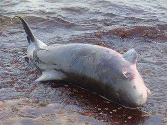 Un ballenato neonato de unos 2 metros y medio de largo fue avistado sin vida en las playas de Sund Bay en San Luis por moradores de ese sector de la isla de San Andrés.