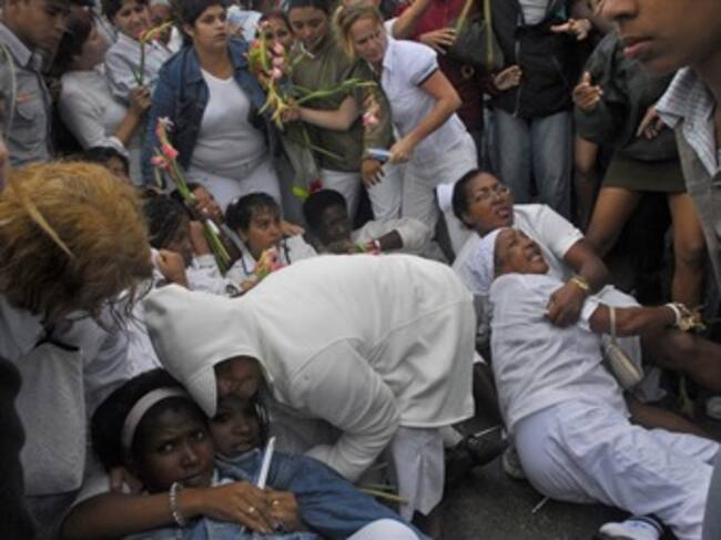 Agentes cubanos empujaron y arrastraron a una treintena de Damas de Blanco y las subieron a la fuerza a dos autobuses para romper su marcha por suburbios de La Habana, como parte de las protestas por el séptimo aniversario del encarcelamiento de 75 disidentes en 2003
