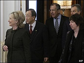La reunión del Cuarteto en Moscú, en la que también participaron la jefa de la diplomacia europea, Catherine Ashton, y el representante especial de los Mediadores, Tony Blair, ha sido la primera que se convoca de manera expresa, al margen de otras actividades internacionales.