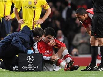 El club indicó en su web que la lesión de Cesc "es el resultado del choque con el defensa de Carles Puyol durante el partido"