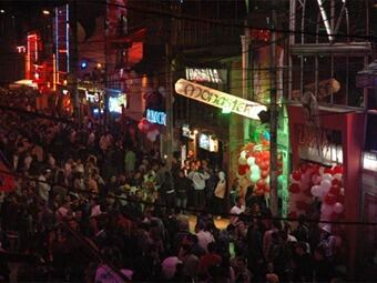 La rumba en los casi cerca de 350 bares que existen en este sector se inicia el jueves en la tarde y se extiende hasta el domingo en la madrugada