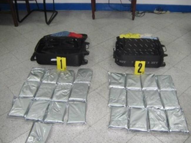 La droga llegó camuflada en cuatro maletas que eran transportadas por tres hombres y una mujer, quienes arribaron en un vuelo comercial procedente de la ciudad de Cali