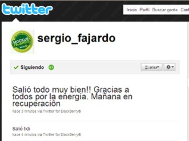 Desde su cuenta de Twitter el candidato a la vicepresidencia, Sergio Fajardo, confirma que la cirugía a la que fue sometido y que inicio pasadas las seis de la tarde del sábado, fue exitosa