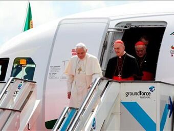 Antes de entrar en el avión para iniciar el viaje de vuelta al Vaticano, Benedicto XVI, se despidió de Portugal con su bendición apostólica, que espera "sea portadora de esperanza, paz y valentía"