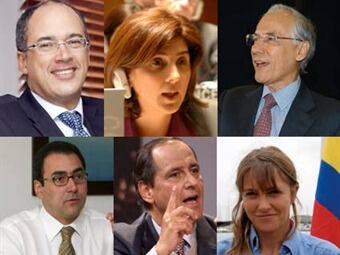 El presidente electo, Juan Manuel Santos, quien adelanta una gira diplomática por Europa y posteriormente por América Latina, ha dado a conocer el nombre de algunos de los que serán sus más cercanos colaboradores. La expectativa que había frente a su gabinete ministerial se ha venido atenuando con el paso de los días, y a medida que revela los nombres y el cargo de sus futuros funcionarios se puede establecer la fortaleza de su gobierno. Caracol Radio recopiló la información y algunos datos correspondientes a la hoja de vida, de los hasta ahora ministros designados, para el gobierno de Juan Manuel Santos. Ellos son Juan Camilo Restrepo, ministro de Agricultura; Sergio Diazgranados, ministro comercio, industria y turismo; Carlos Rodado Noriega, ministro de minas y energía; Sandra Bessudo, ministra de ambiente; Juan Carlos Echeverry, ministerio de hacienda; Germán Cardona Gutiérrez, ministro de transporte y María Ángela Holguín, Canciller de la República. Juan Camilo Restrepo Salazar, nació en Medellín, Antioquia, el 19 de octubre de 1946. Es abogado de la Pontificia Universidad Javeriana y se especializó en Derecho Económico en el London School of Economics con un doctorado en Derecho Administrativo en La Sorbona. Estuvo vinculado a la antigua Junta Monetaria, donde se desempeñó como secretario entre 1970 y 1971. En la Federación Nacional de Cafeteros, ocupó los cargos de representante en Londres, entre 1973-1975 y gerente comercial entre 1986 y1990. En el sector público también fue Superintendente Bancario, entre 1977 y 1978) y Presidente de la Comisión Nacional de Valores, entre 1982-198K; posteriormente, en el año de 1990, fue presidente de Acerías Paz del Río, para luego ser designado Ministro de Minas y Energía. En las elecciones parlamentarias de 1994 fue elegido Senador como segundo renglón de Fabio Valencia Cossio. Miembro de la Comisión Tercera de asuntos económicos y llegó a ser nombrado el mejor senador de 1995. Entre 1998 y 2000 fue Ministro de Hacienda, durante el gobierno de Andrés Pastrana y para el año 2002 fue elegido como candidato oficial del Partido Conservador para las elecciones presidenciales de 2002. Sergio Díazgranados, nació en Santa Marta, es casado, padre de dos hijos y ha logrado un amplio desempeño en el sector público