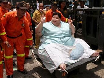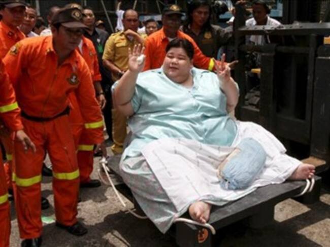 La tailandesa, identificada por la televisión como Amnuayporn Thongprapai, de 40 años, indicó que llevaba tres años sin salir de casa debido a su volumen, que sólo le permite andar lo suficiente para poder ir por su propio pie de la habitación al cuarto de baño