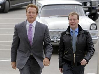 El polifacético gobernador, que encarnó a Terminator en 1984 y desde entonces ha conseguido que la frase "I''ll be back", que aparece en numerosas de sus películas, sea automáticamente asociada con él, acudió hasta la residencia campestre de Medvédev en Gorki para impulsar el proyecto del centro ruso de tecnologías e innovación en Skólkovo, según la agencia RIA-Nóvosti