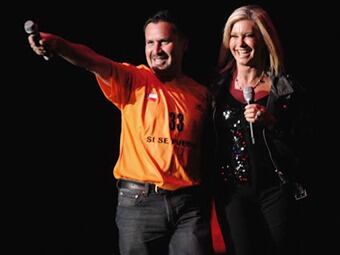 Olivia Newton-John cantó junto a uno de los mineros rescatados en Chile