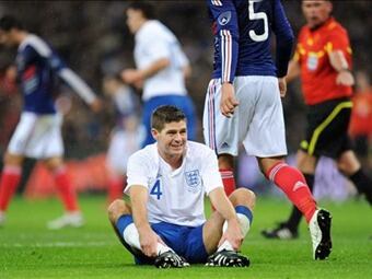 El capitán del Liverpool, Steven Gerrard, podría estar de baja entre tres y cuatro semanas por los problemas en los isquiotibiales que sufrió durante el partido del miércoles contra Francia, en el que Inglaterra fue derrotada (1-2) en Wembley