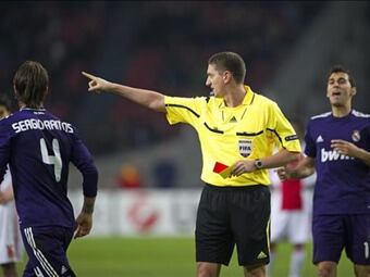 Dos exageradas pérdidas de tiempo terminaron con Xabi Alonso y Sergio Ramos expulsados en el tramo final del partido de la Liga de Campeones disputado en el Amsterdam Arena, pero con la posibilidad de llegar desahogados de tarjetas a las eliminatorias de octavos de final