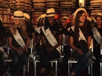 Las beldades visitaron las bodegas de las industria Licorera de Caldas, donde conocieron como se añeja el ron y la crema de ron de esta empresa
