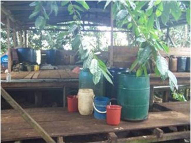 En el interior del complejo cocalero fueron hallados 165 galones de ACPM, 110 galones de gasolina, 100 kilos de cal, 20 kilos de soda cáustica, nueve kilos de urea y cinco canecas plásticas, entre otros elementos