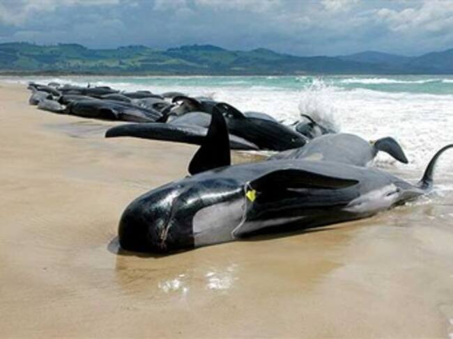 Un grupo de 82 ballenas piloto quedó hoy varado en una remota playa al sur de Nueva Zelanda, informaron fuentes oficiales