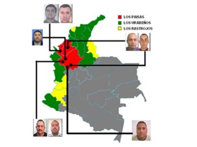 Son ocho los hombres señalados por todas las autoridades como los cabecillas de las tres bandas criminales que actúan principalmente en cuatro departamentos de Colombia.