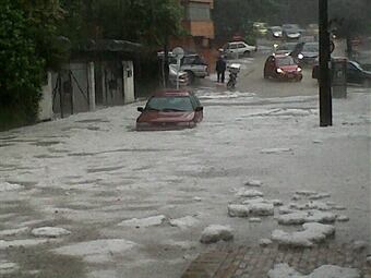Sin embargo, el Cuerpo de Bomberos dijo que no fueron afectadas viviendas y no hay damnificados. El granizo se acumuló en vías y antejardines.
