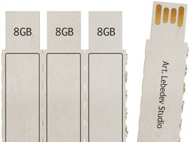 La compañía rusa de diseño Lebedev Studio, ha creado un prototipo de memoria USB que se caracteriza del resto por estar fabricada con cartón, para ser desechadas en el momento en el que el usuario lo desee y convertirse en una especie de portador de documentos desechables.