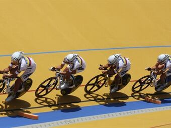Resultados:Persecusión por equipos hombres 4000 metros1. Gran Bretaña 3:55:438 2. Nueva Zelanda 4:00:3143. España 4:03:3089. Colombia 4:07:607