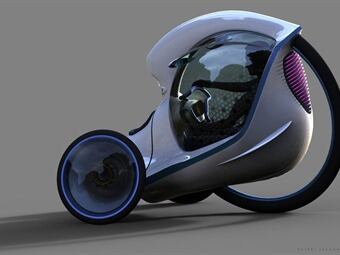 El conductor estaría ubicado en el interior de la tercera rueda, tiene una división en la mitad del panorámico, una batería que impulsaría la tracción delantera y el motor, además de inclinar la estructura hacia atrás para así tener más estabilidad y velocidad.