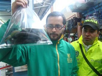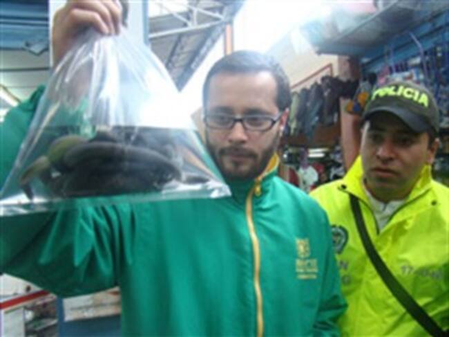 Según la Secretaría de Ambiente de Bogotá, 34 conchas de caracol, 11 cecilias (anfibios) y 12 bolsas llenas de corales fueron decomisadas en la Plaza del Restrepo, tras un operativo realizado por la Sijín y la Policía Ambiental y Ecológica en 23 locales del lugar.