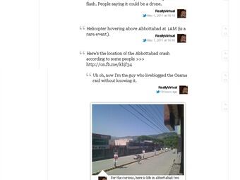 Sohaib Athar un consultor de tecnología que permanecía despierto frente su computador relató a través de la red de Twitter sobre la presencia de un helicóptero que sobrevolaba la zona, además de describir explosiones, sonidos extraños y bloqueos viales, sin saber que cerca de su residencia ubicada en Abbottabad era el escenario del ataque en el que horas más tarde Osama Bin Laden sería abatido